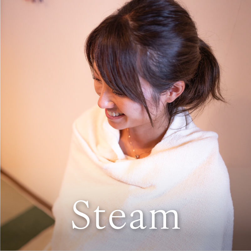 蒸気の温かさで、身体の内側から巡りを整える温活セラピー。ハーバルスチームとハグスチーム、目的や体調に合わせてお選び頂けます。