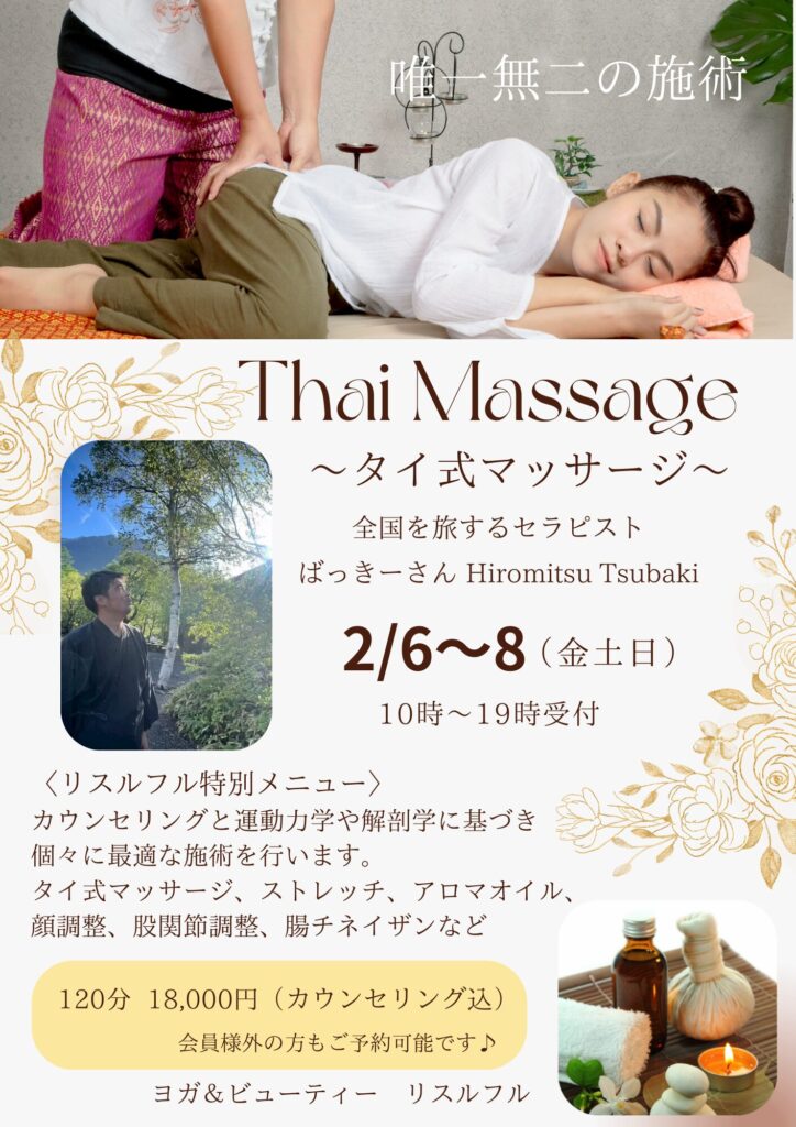 ☆前回満員!ばっきー先生のタイ式マッサージ施術